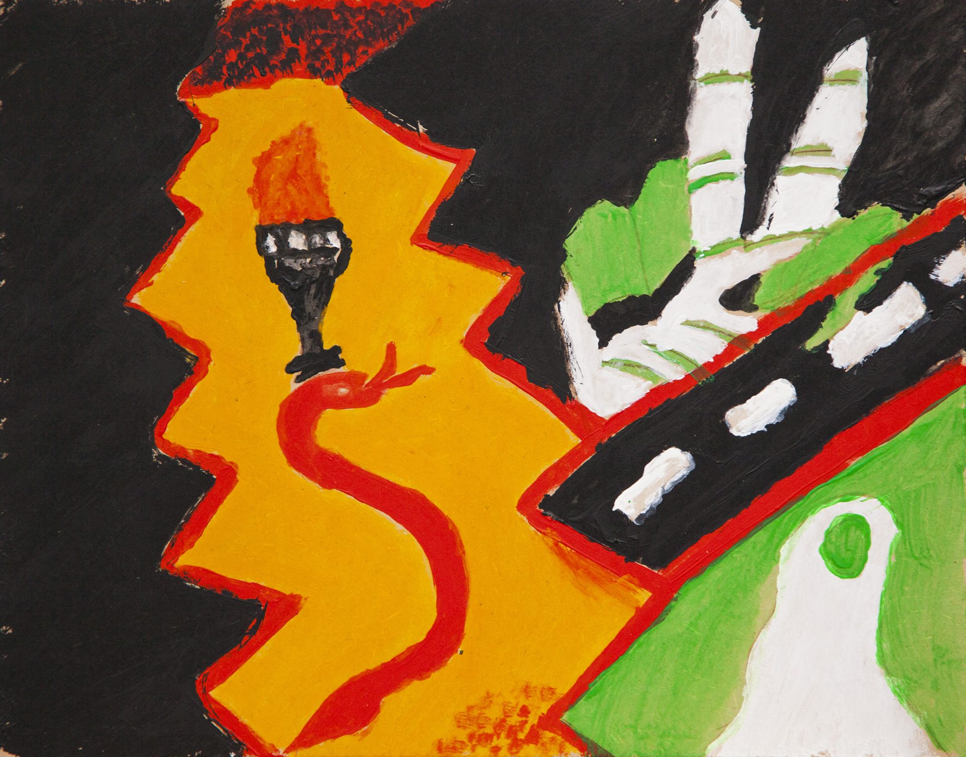 “My art relates to my past, present and future experience. It’s my own vision and prophecy of the future of a time to come including having rainbow in the sun and living with angelic creatures – damnations. It has a theme of religious reflections of my character today. Some of the symbols and landscapes I depict I have seen fist hand. My images have relevance to everyone, and everyone viewing them will have a different interpretation to the next.”