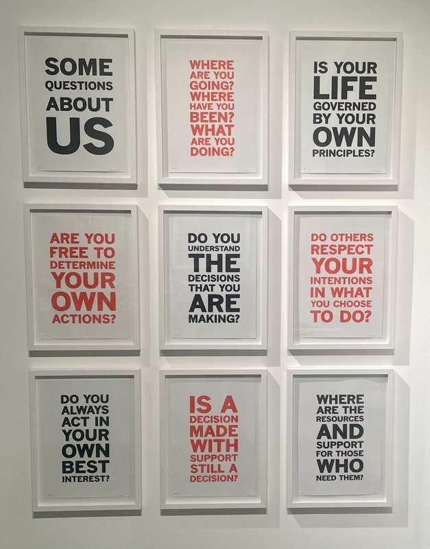 About this objectA group of 9 artworks – 9 risograph prints on white paper, each with a typed question about mental health, written in bold capital letters and printed in either red or black ink. Each artwork is signed and dated 2019, marked as artist proof 2/2.
