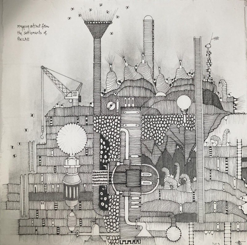 About this objectPen drawing, abstract cross-section landscape scene. Part of a series.
