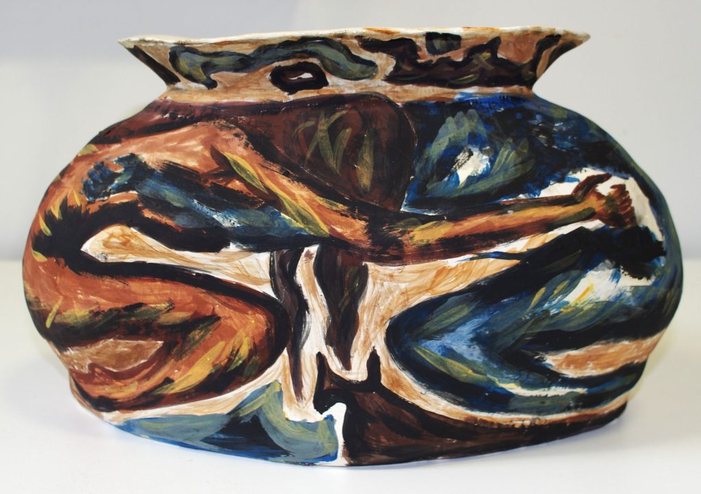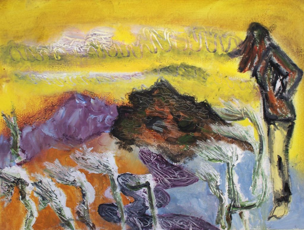 The artist’s home of the Isle of Man, where these paintings were produced, is both setting and inspiration. They make use of natural dyes produced from plants foraged in this landscape, giving the exhibition a distinct character and feeling across materials.